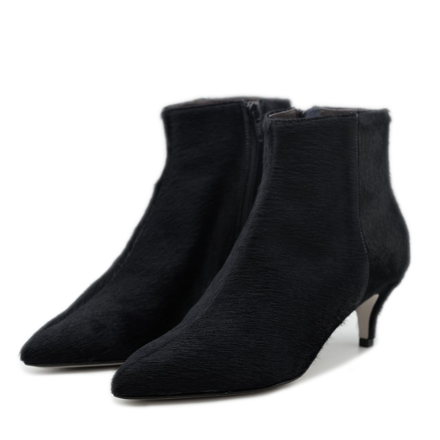 Tronchetto a punta in pelle effetto cavallino e suola in vero cuoio.