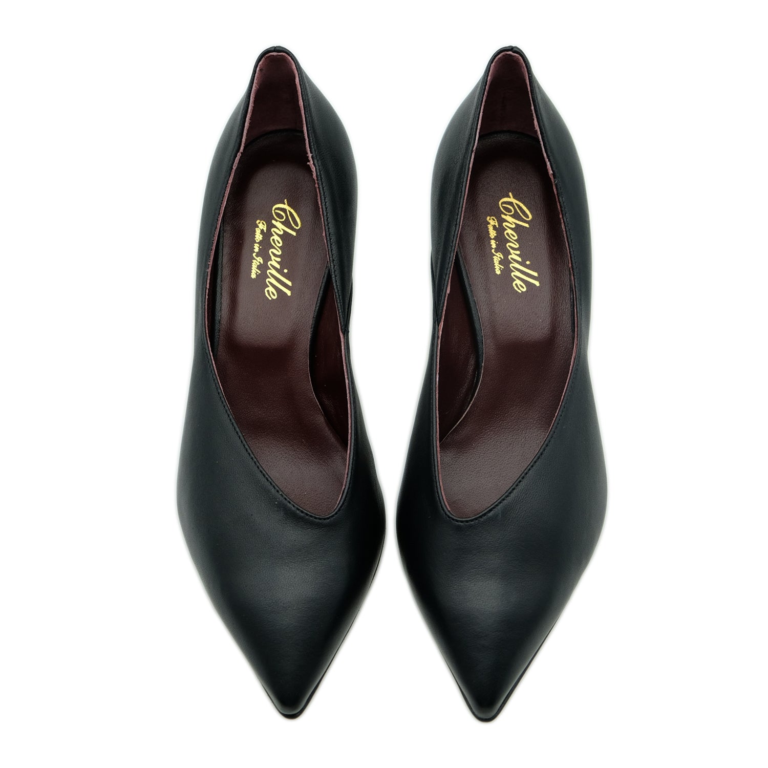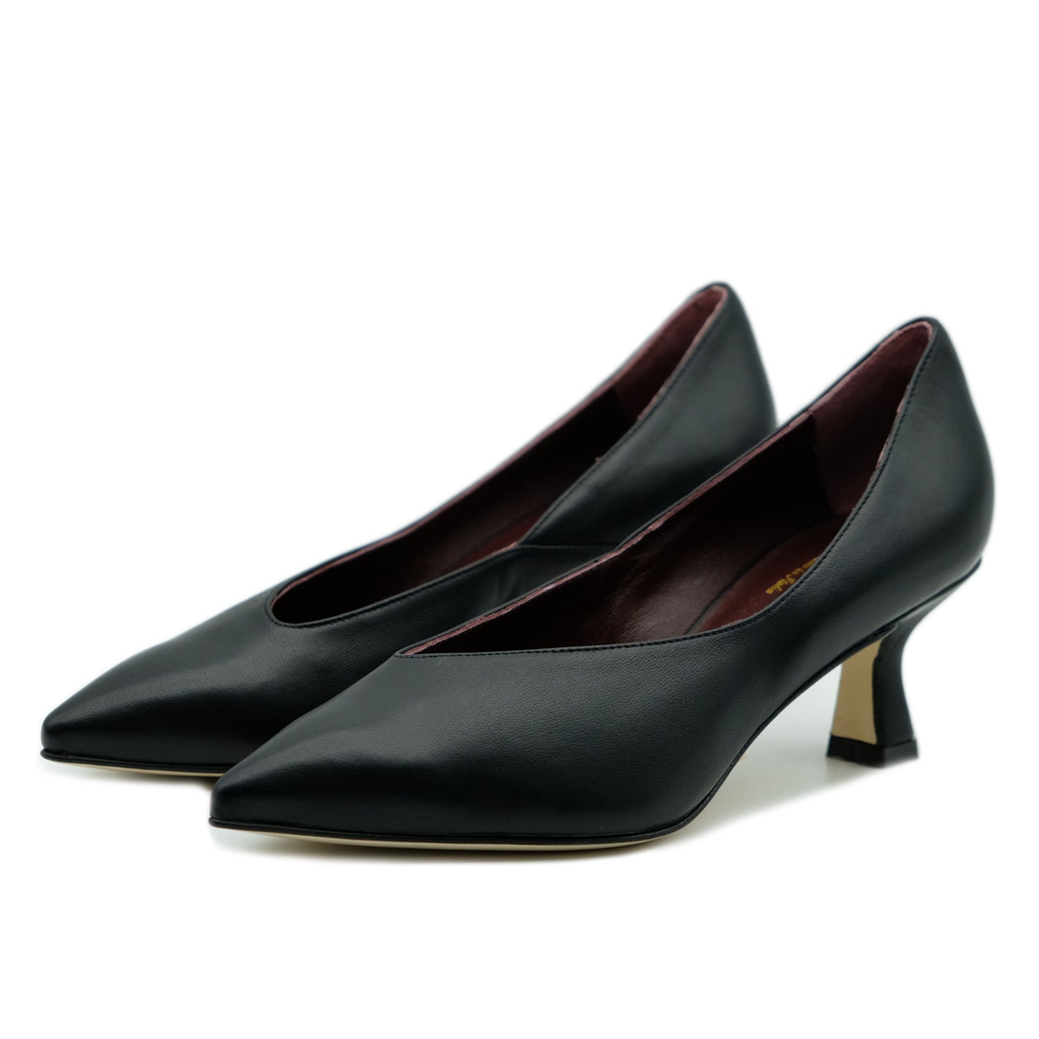 Décolleté a punta in pelle con scollatura asimmetrica e suola in vero cuoio.